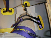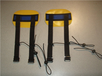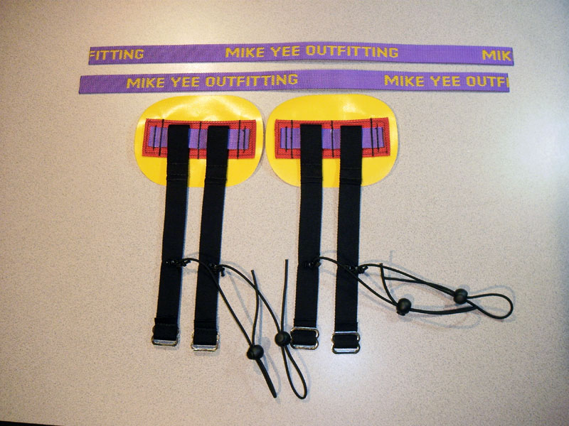 The system consists of replacement double knee anchors with two attachment points and a second tail to be sewn onto the existing thigh strap. Mike Yee Outfitting will modify your thigh straps at no charge or the tail can be sewn by a shoe store or local seamstress.
