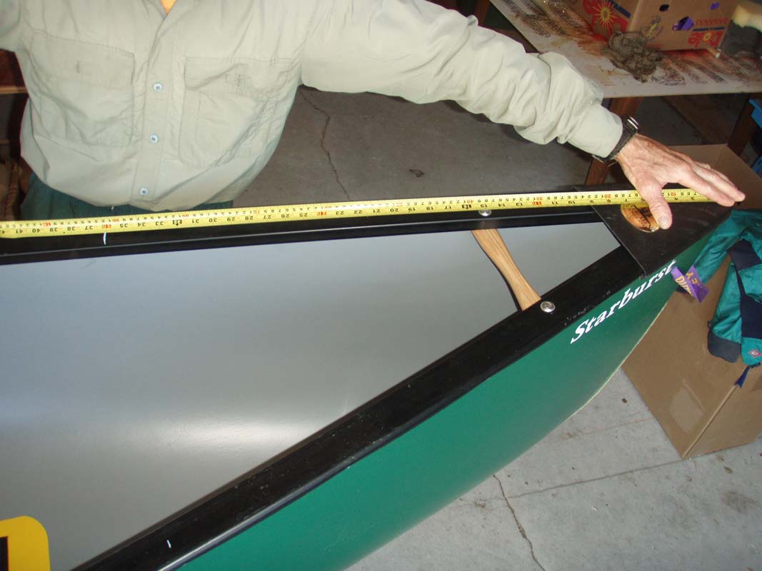 With a pencil mark every 4 inches from the ends of the boat to the length of the air bag (gunwale mark) (pic 3L)