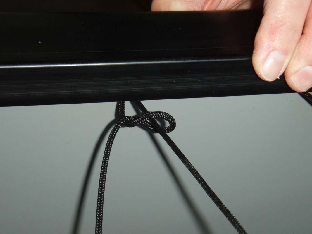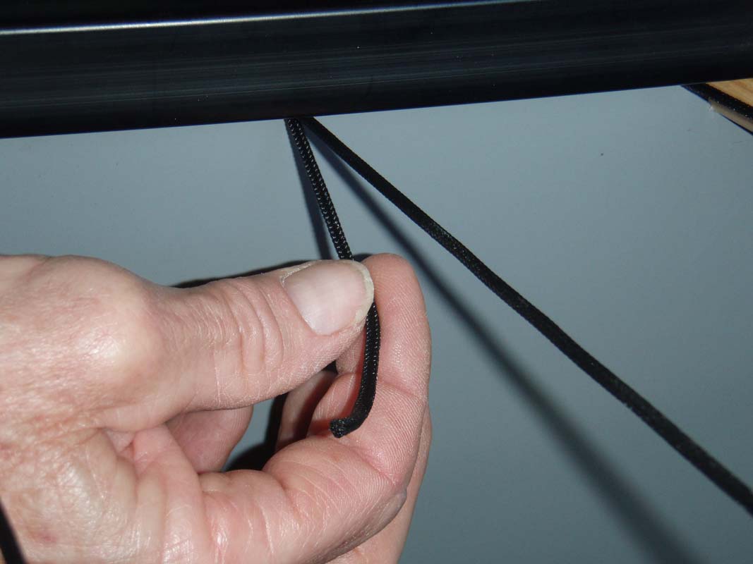 At the paddler end of the cage, tie off a loop (pic 2R) and tighten up cage towards the end (pic 3L)