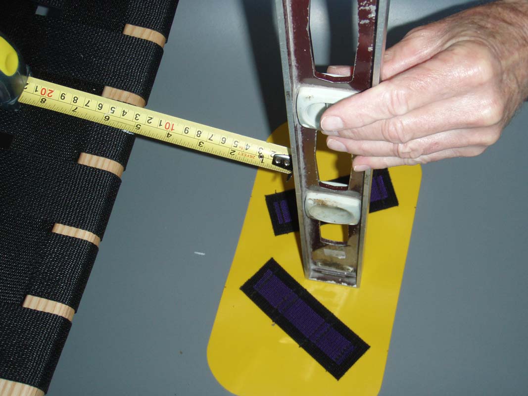 Centre the patch vertically between the two seat posts approximately ¼” down from gunwale (pic 3R)
